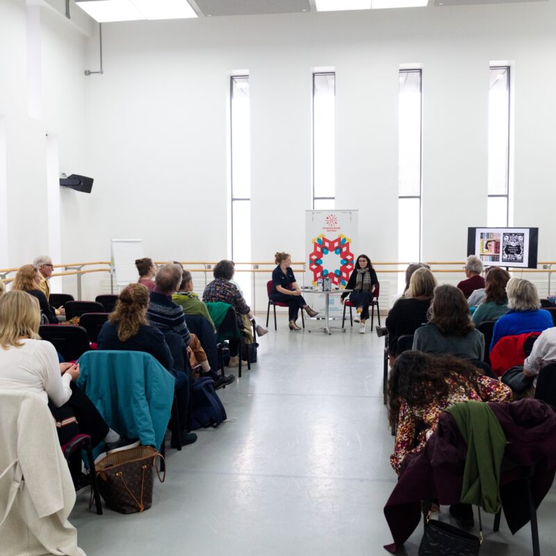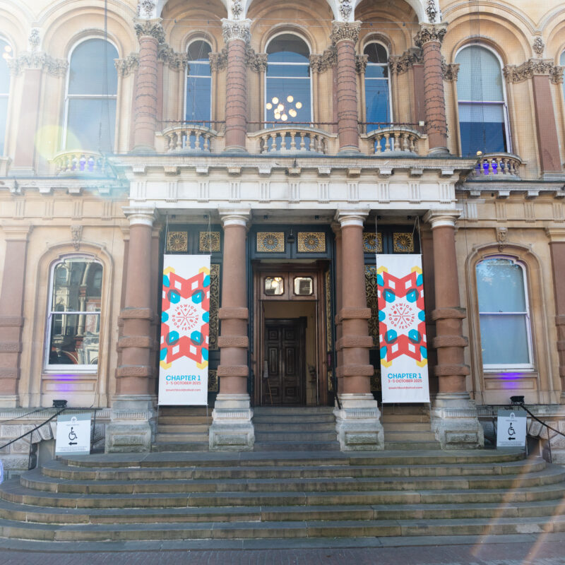 Working closely with the volunteer-led team, we helped define their values and purpose, laying a strong strategic foundation. Our discovery phase involved researching book festivals both locally and globally to ensure Ipswich could stand out with a unique, resonant concept. The Kaleidoscope concept celebrates the transformative power of stories. Books shift meaning with each reader, just as a kaleidoscope refracts light into endless new patterns. This metaphor inspired a bold, geometric logo featuring open-book elements that form a dynamic mark, paired with strong typography and a confident red to ensure visual impact. Icons inspired by Ipswich’s architecture represent six literary genres, forming the kaleidoscope’s vibrant segments. Colour is always an important consideration for us. Drawing inspiration from Ipswich’s own Liquidambar tree in Christchurch Park, we developed a vibrant, autumnal palette to reflect the festival’s October timing, symbolising transformation and creative energy. It’s on fire (red!) in Autumn.