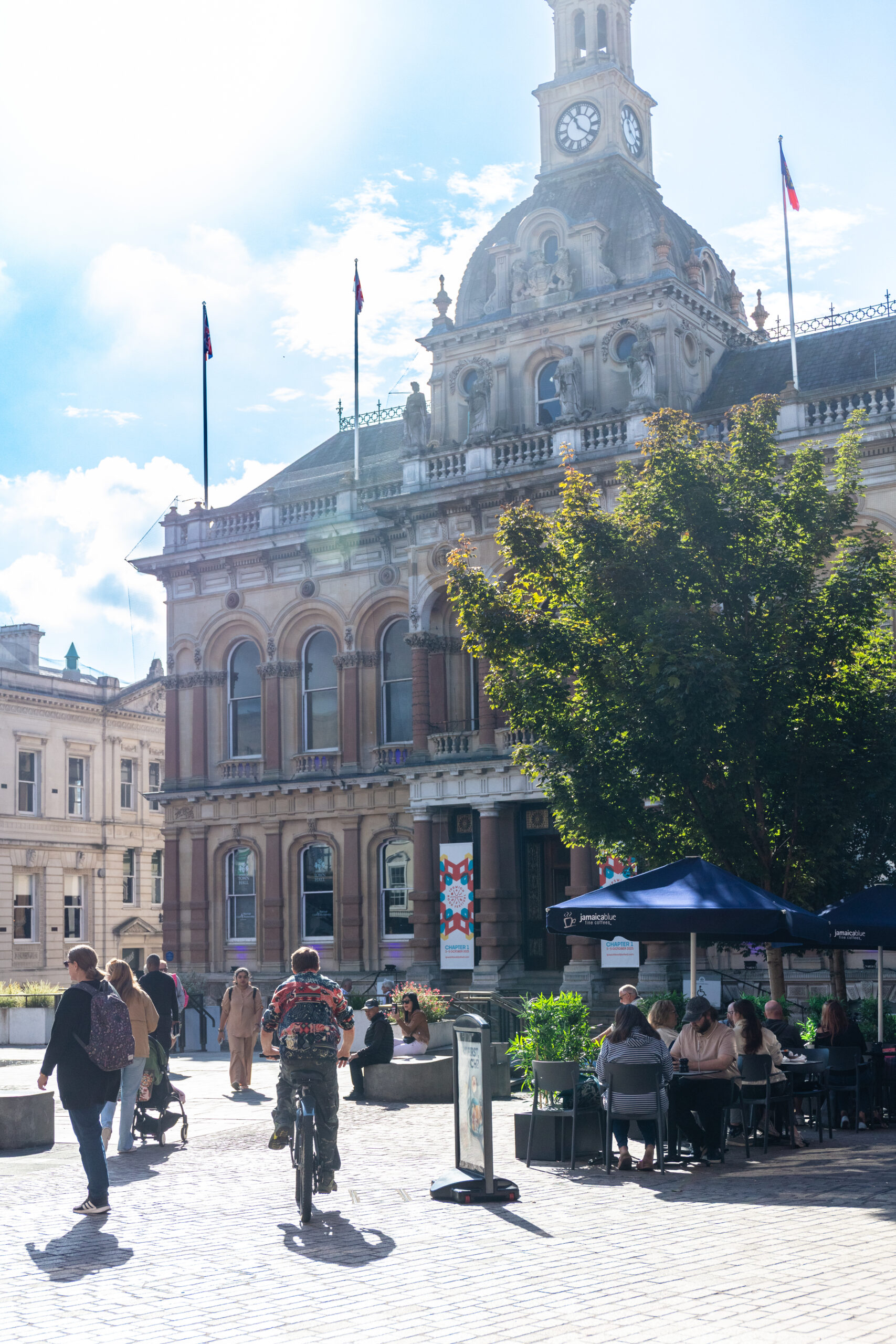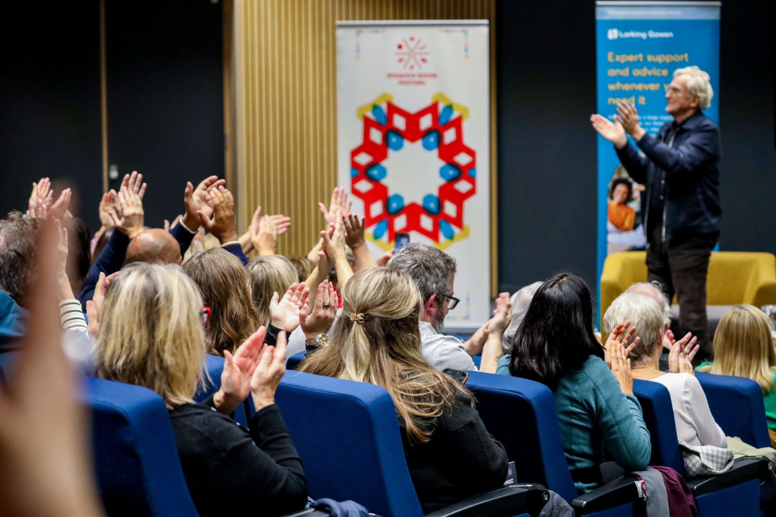 Working closely with the volunteer-led team, we helped define their values and purpose, laying a strong strategic foundation. Our discovery phase involved researching book festivals both locally and globally to ensure Ipswich could stand out with a unique, resonant concept. The Kaleidoscope concept celebrates the transformative power of stories. Books shift meaning with each reader, just as a kaleidoscope refracts light into endless new patterns. This metaphor inspired a bold, geometric logo featuring open-book elements that form a dynamic mark, paired with strong typography and a confident red to ensure visual impact. Icons inspired by Ipswich’s architecture represent six literary genres, forming the kaleidoscope’s vibrant segments. Colour is always an important consideration for us. Drawing inspiration from Ipswich’s own Liquidambar tree in Christchurch Park, we developed a vibrant, autumnal palette to reflect the festival’s October timing, symbolising transformation and creative energy. It’s on fire (red!) in Autumn.